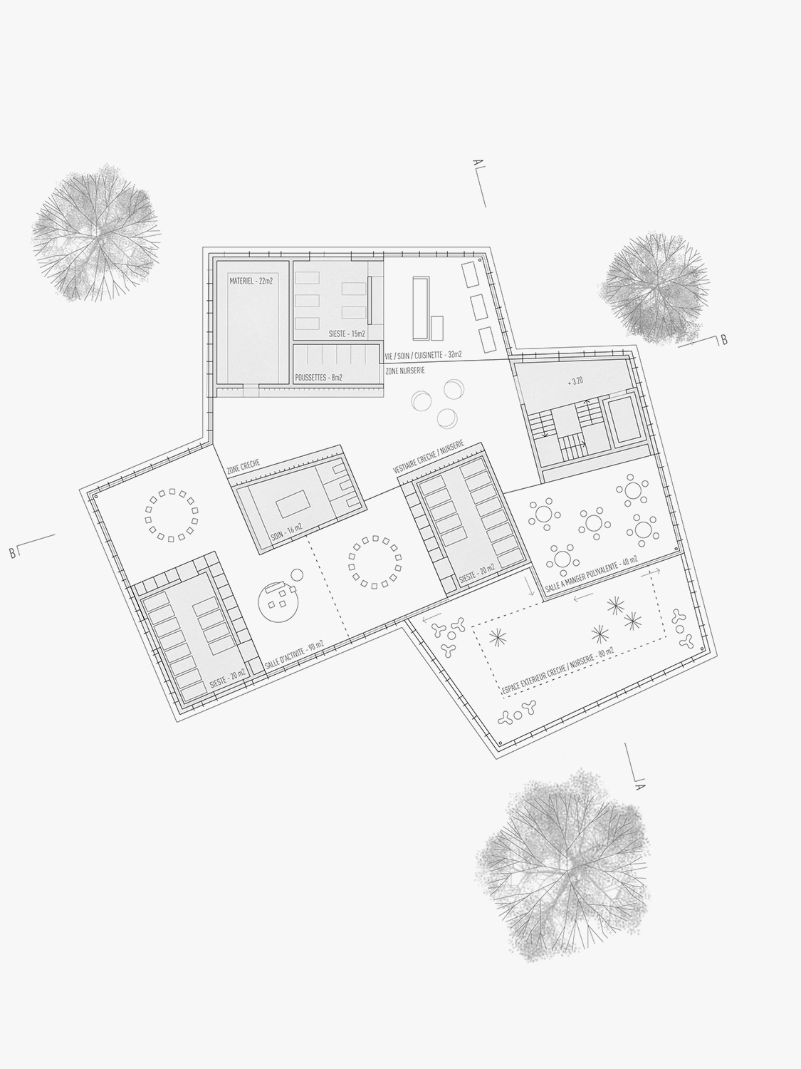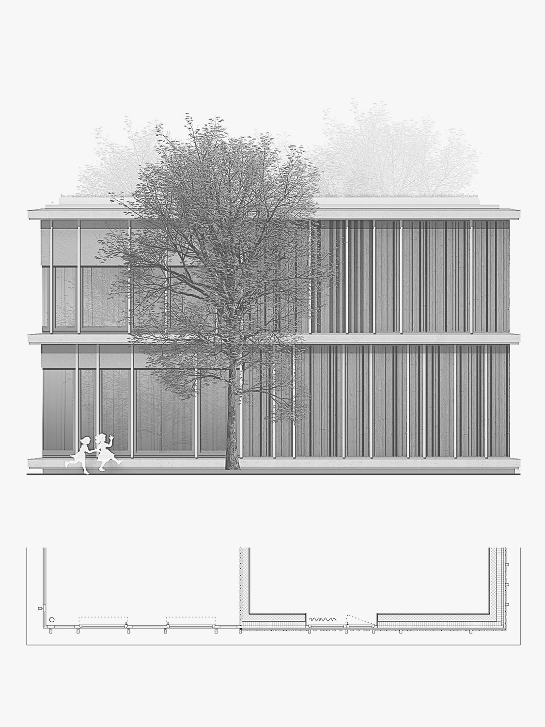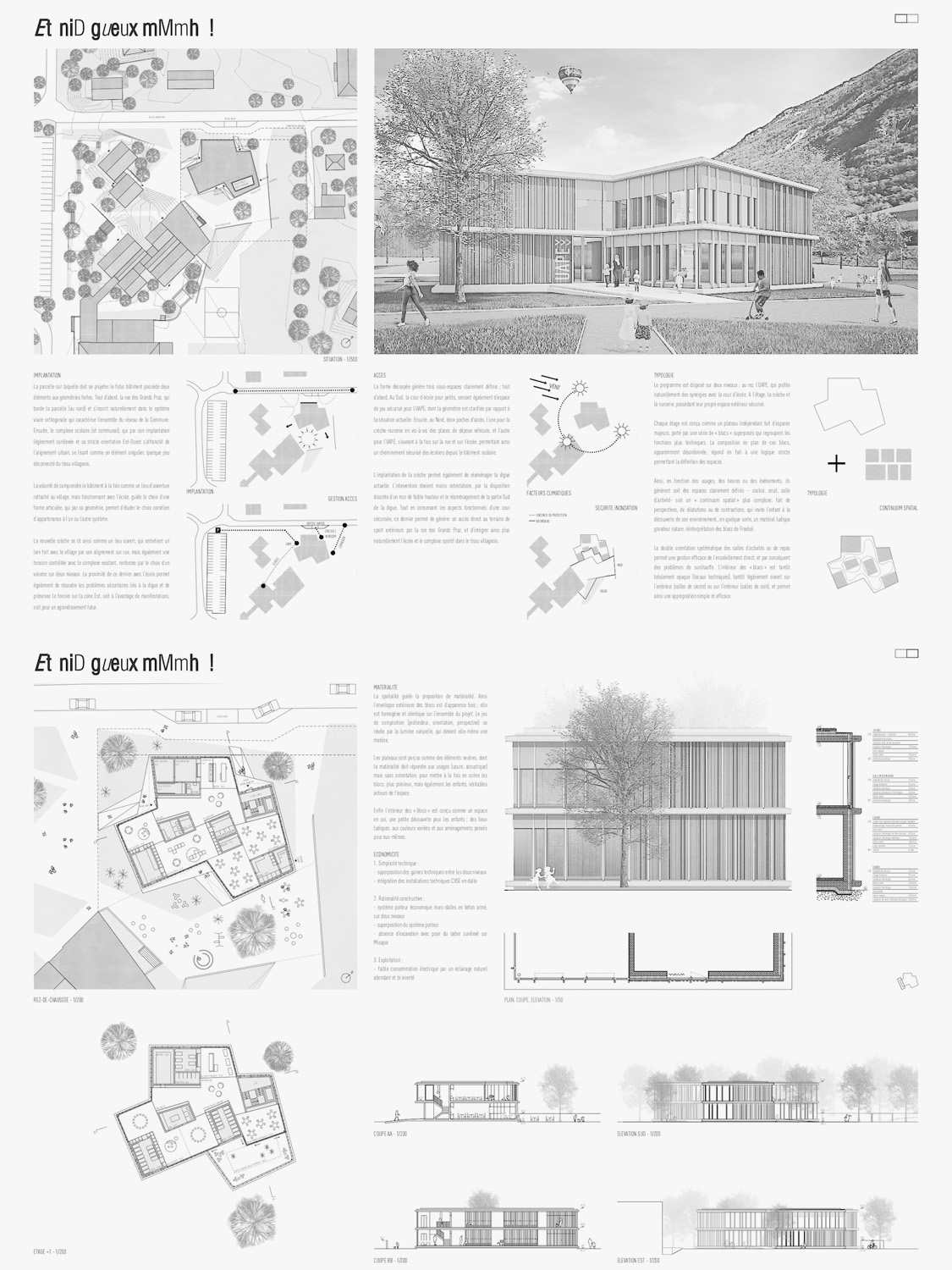 Statut. Projet de concours pour la construction d'une crèche UAPE à Charrat. Obtention du 2ème prix. En collaboration avec GAME Architectes.