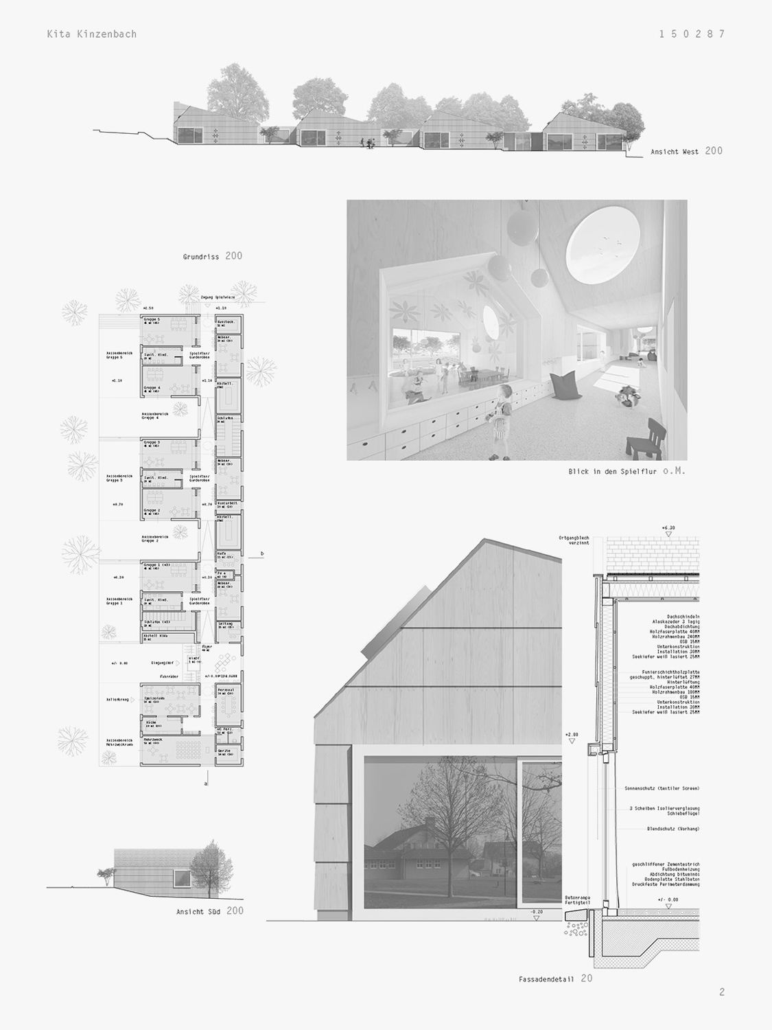 Statut. Projet de concours pour la construction d'une crèche à Heuchelheim, Allemagne. Obtention du 3ème prix. Avec l'atelier Schober Zitzelsberger, Munich.