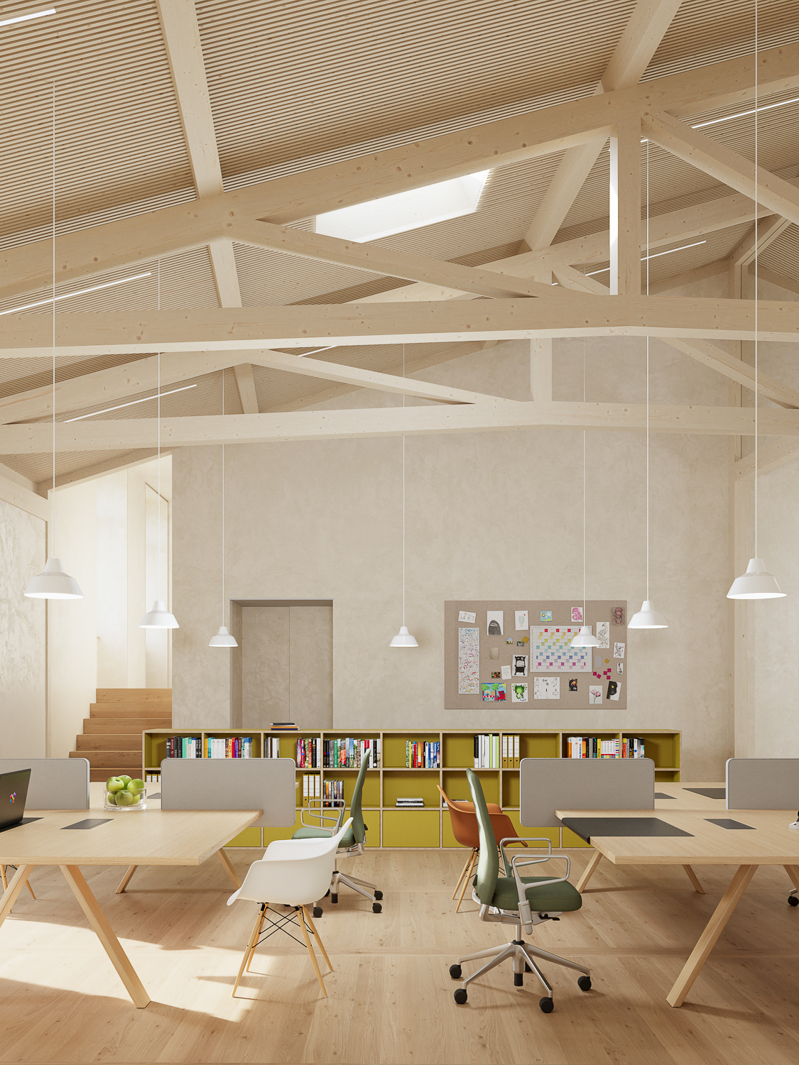 MATÉRIALITÉ ET AMBIANCE : COHÉRENCE ET DURABILITÉ.Le projet de rénovation de la Maison communale de Sembrancher et de son annexe est intrinsèquement lié à un choix de matériaux qui incarnent la durabilité et une esthétique intemporelle. La sélection rigoureuse des matériaux s'inscrit dans une démarche écoresponsable, visant à réduire l'empreinte environnementale tout en améliorant la fonctionnalité des espaces pour les usagers.
