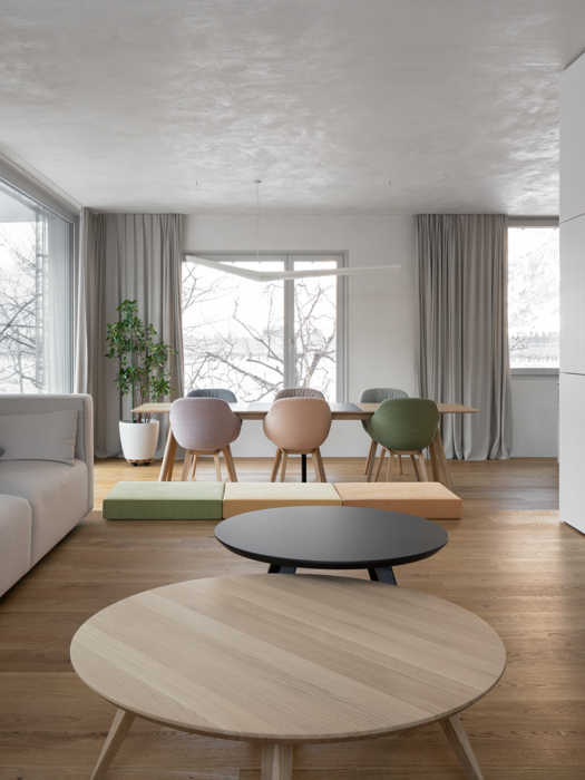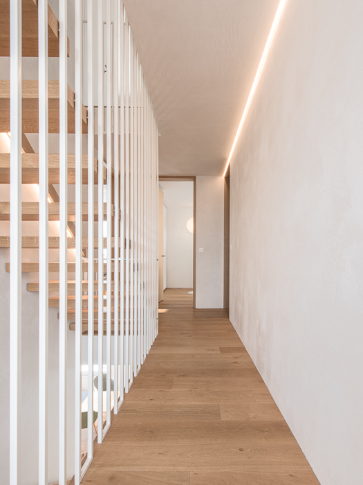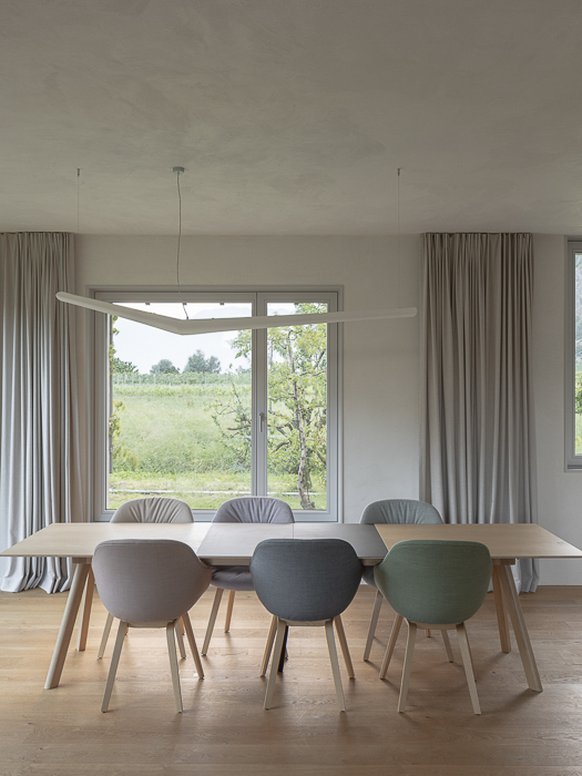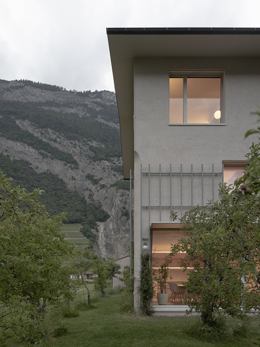Chaque pas dans la maison invite à contempler la nature environnante. Chaque seuil franchi propose une nouvelle perspective, magnifiant les moments simples du quotidien à travers un dialogue subtil entre architecture et territoire. La Maison Les Vorgiers célèbre la simplicité de la vie en transformant l’ordinaire en une expérience intime et poétique, enracinée dans le patrimoine naturel et architectural de Saillon.